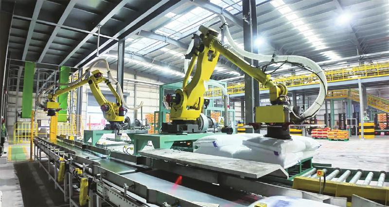 心連心集團的機器人在行云流水地高效裝運化肥